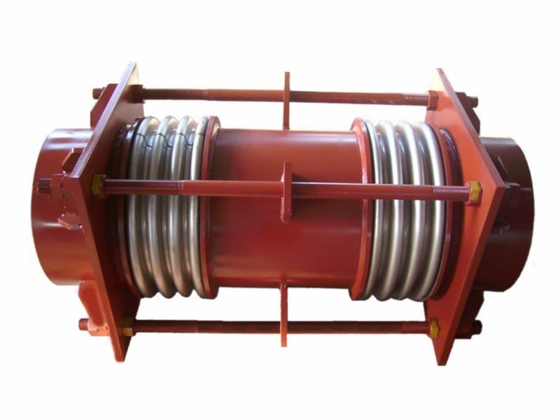 大拉桿式波紋補(bǔ)償器(又稱復(fù)式拉桿式)是由兩個(gè)相同的波紋管及端管、端板和拉桿組成的撓性部件,通過波紋管的角偏轉(zhuǎn)可吸收管道單平面或多平面的橫向位移。4只長拉桿能承受壓力,推力和其他附加外力的作用,拉桿兩端的螺栓出廠前已調(diào)好間距,安裝前大拉桿是松動(dòng)的,在補(bǔ)償器工作變形后,大拉桿可以起到限制變形量,保護(hù)波紋管的作用。